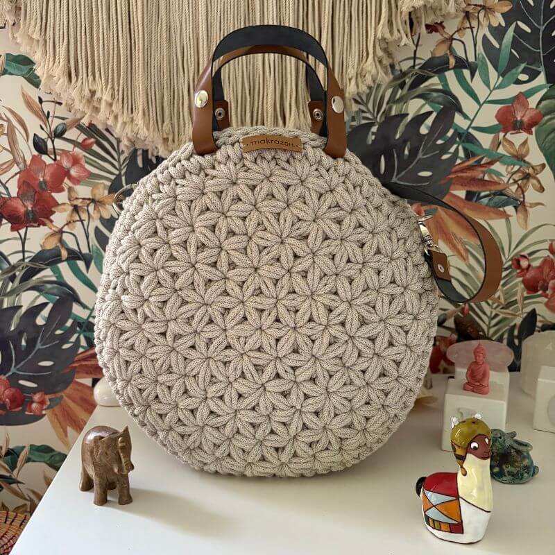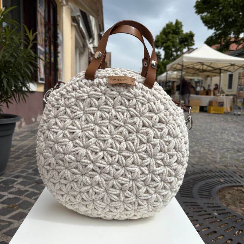 No.56. Óriás kör alakú jázmin mintás kézi- és crossbody horgolt táska