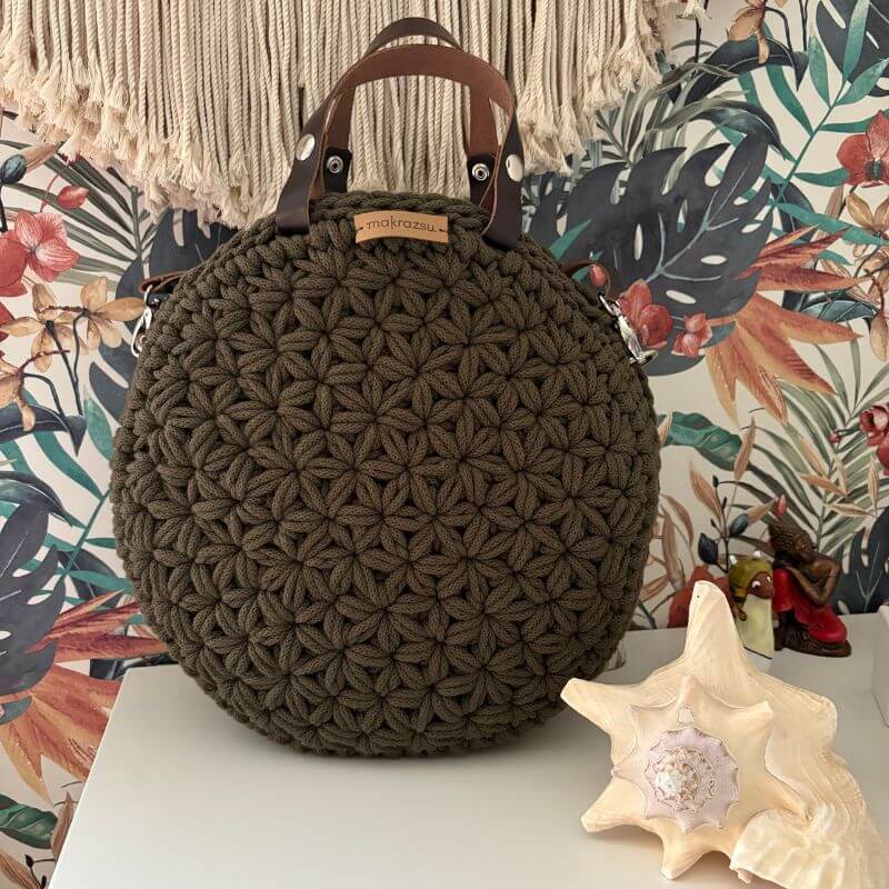 No.52. Nagy kör alakú jázmin mintás horgolt hátizsák